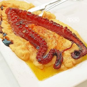 Pulpo a la plancha con revolconas
